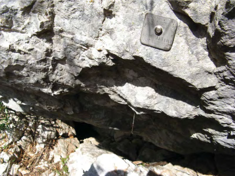 Gori : Grotte #2364 : fissure verticale bien bétonnée : au fond,